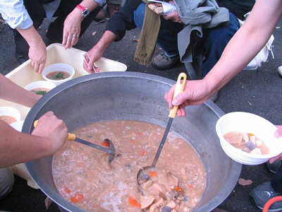 お昼は「比良の新米と里の味」おにぎりと豚汁、あちこちで「美味しい!!」の声、お腹も心も満たされてちょっと一服です。